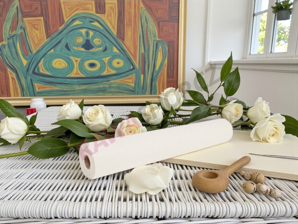 Dekorativní látka na roli se hodí na aranžování květin nebo i jako prostírání na stůl.
