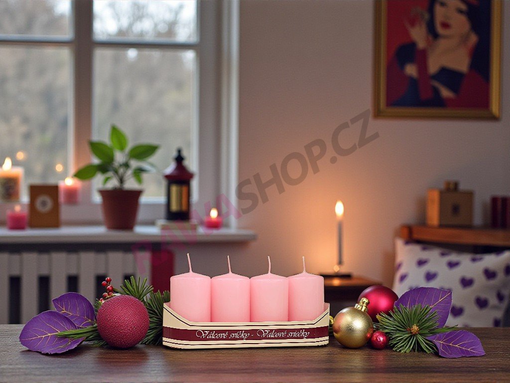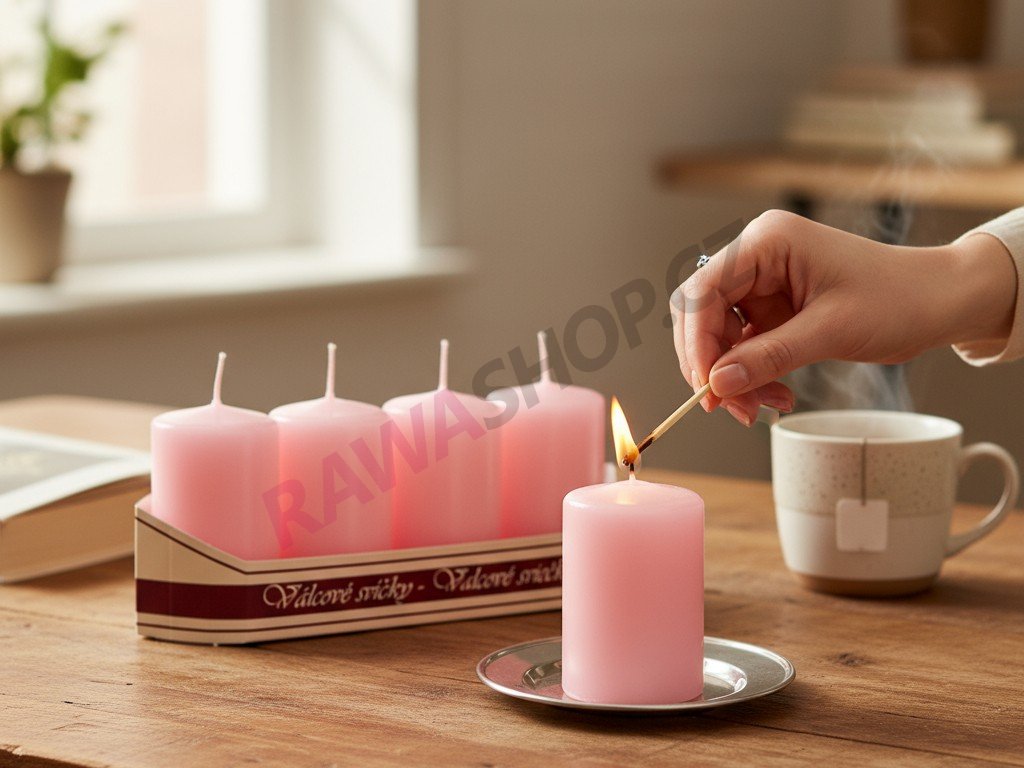 Svíce válec 40/70 balení 4ks - světlá růžová