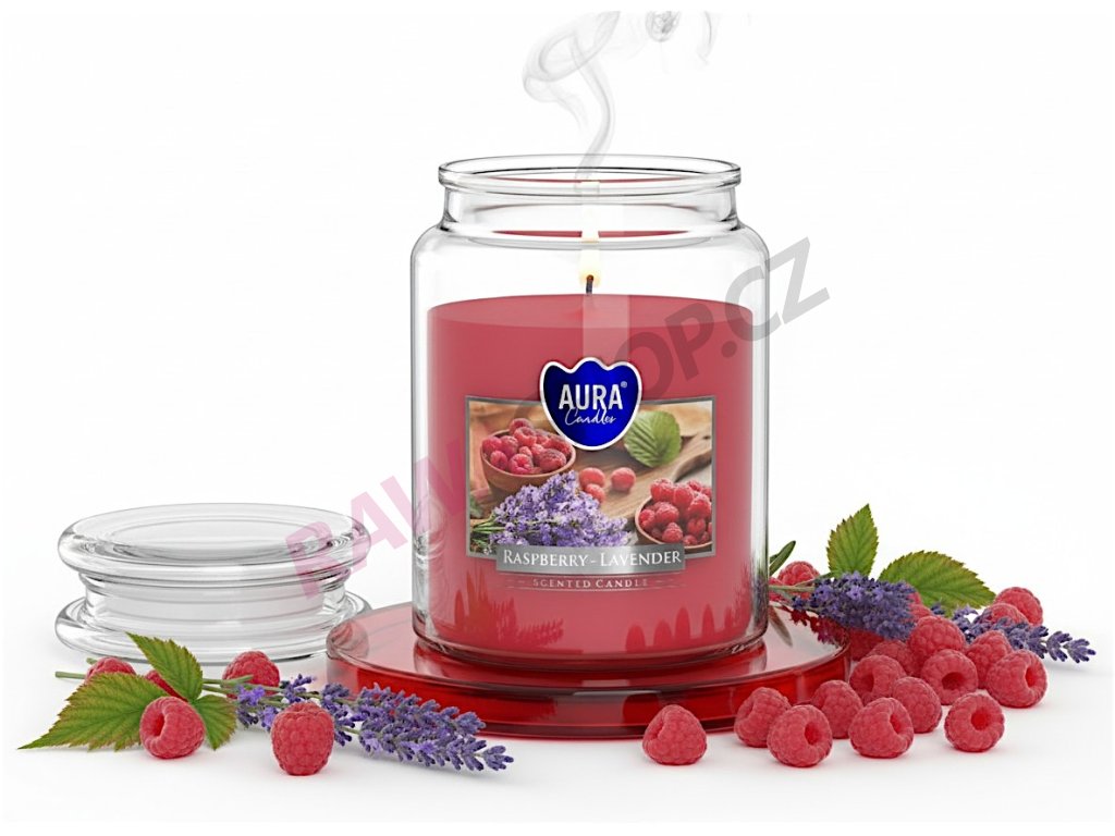Svíčka s víčkem 500g - malina-levandule