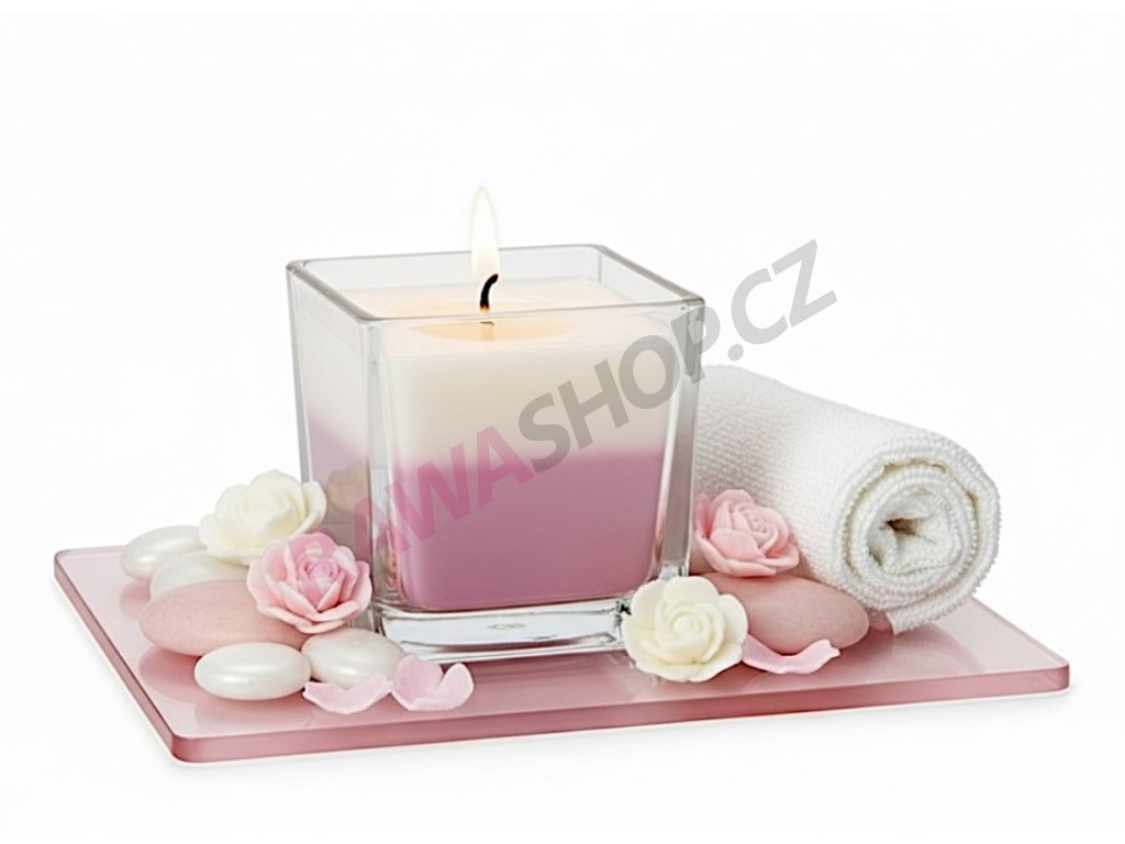 Vonná svíčka v masivním skle s přidaným éterickým olejem. Svíčka je složena ze tří vrstev odstínů. Svíčka je vhodná jako samostatná dekorace. Doba hoření je zhruba 32 hodin.