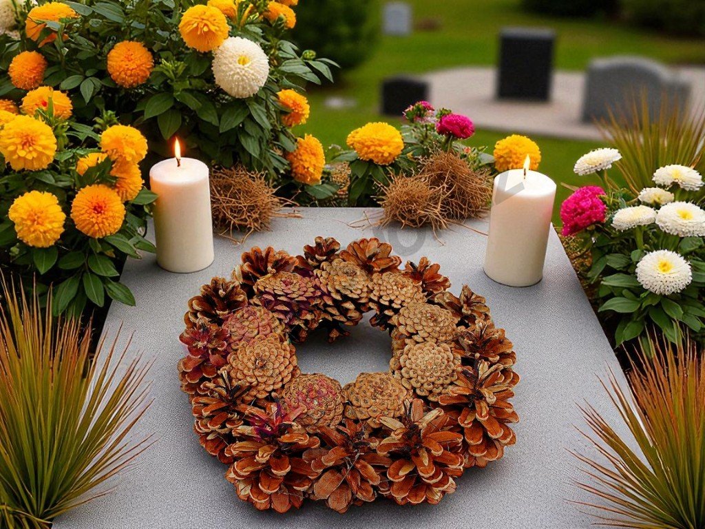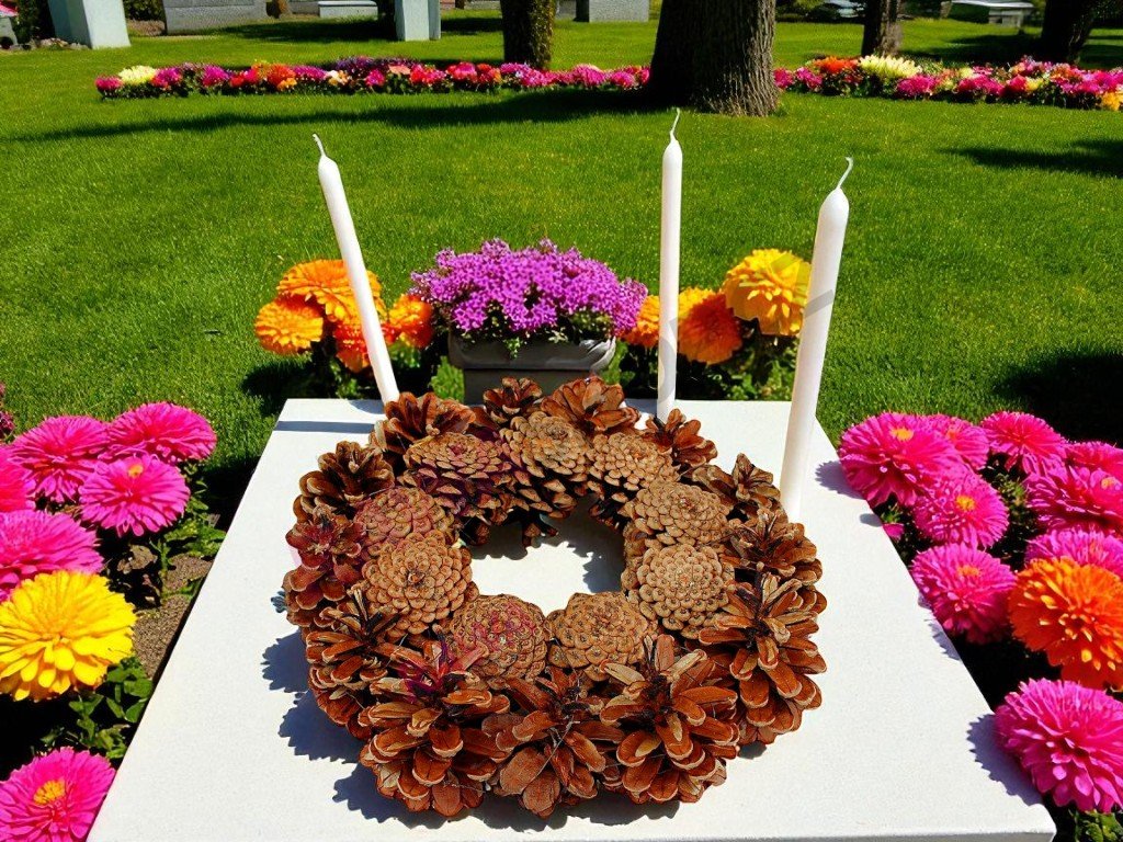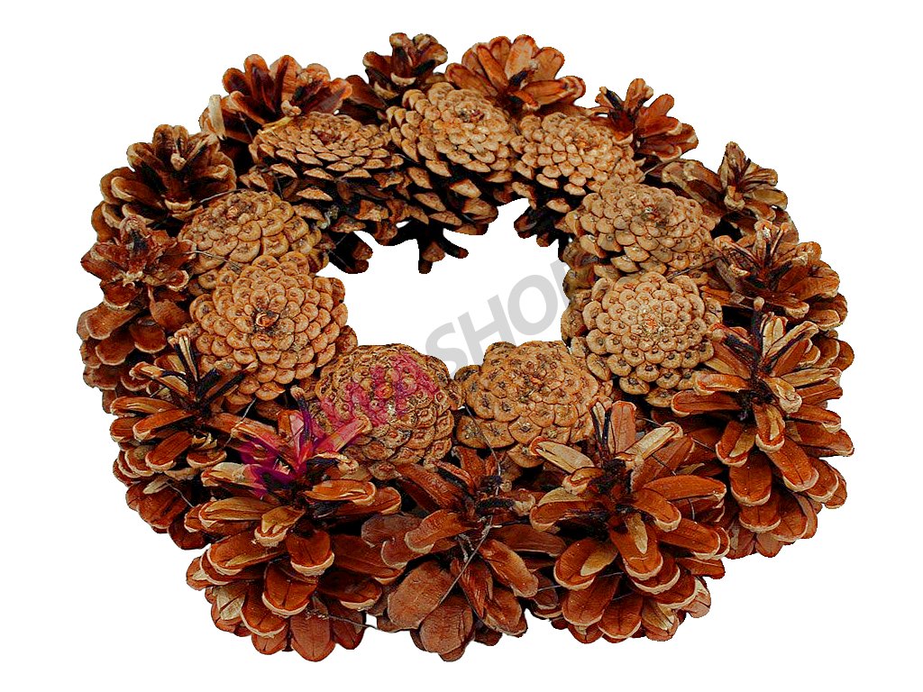 Šiškový věnec je vhodný pro aranžování tématických dekorací.