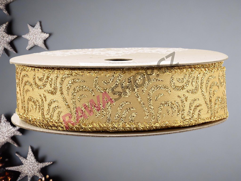 Saténová dekorační stuha. Tato stuha má po okrajích tenký drátek, a tak ji lze lehce tvarovat.