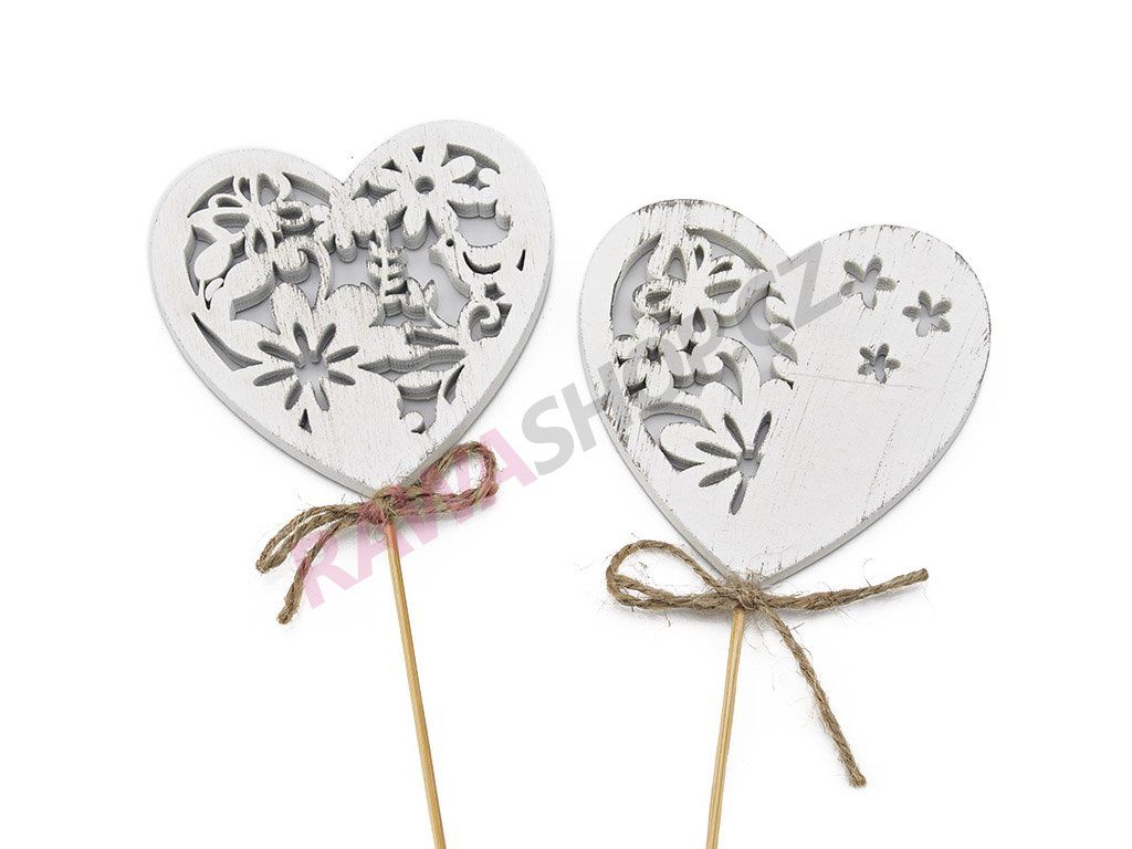 Zápichy srdíčko dřevo balení 10ks - bílá